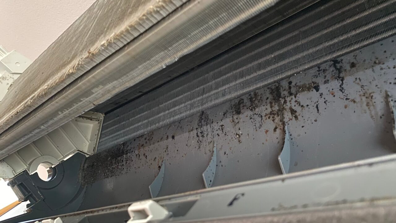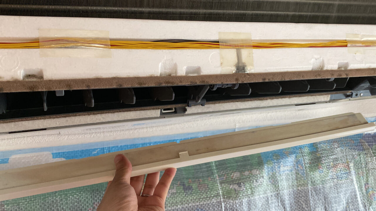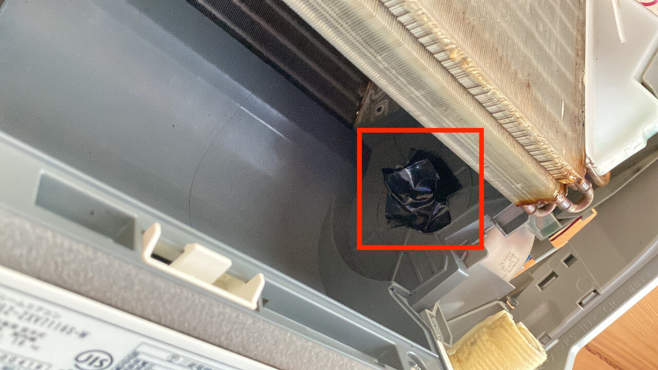 ドレンパンを取り外すまでは見えなかった黒カビが大量にあることがわかるかと思います。