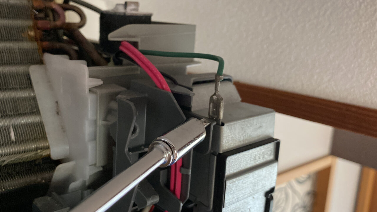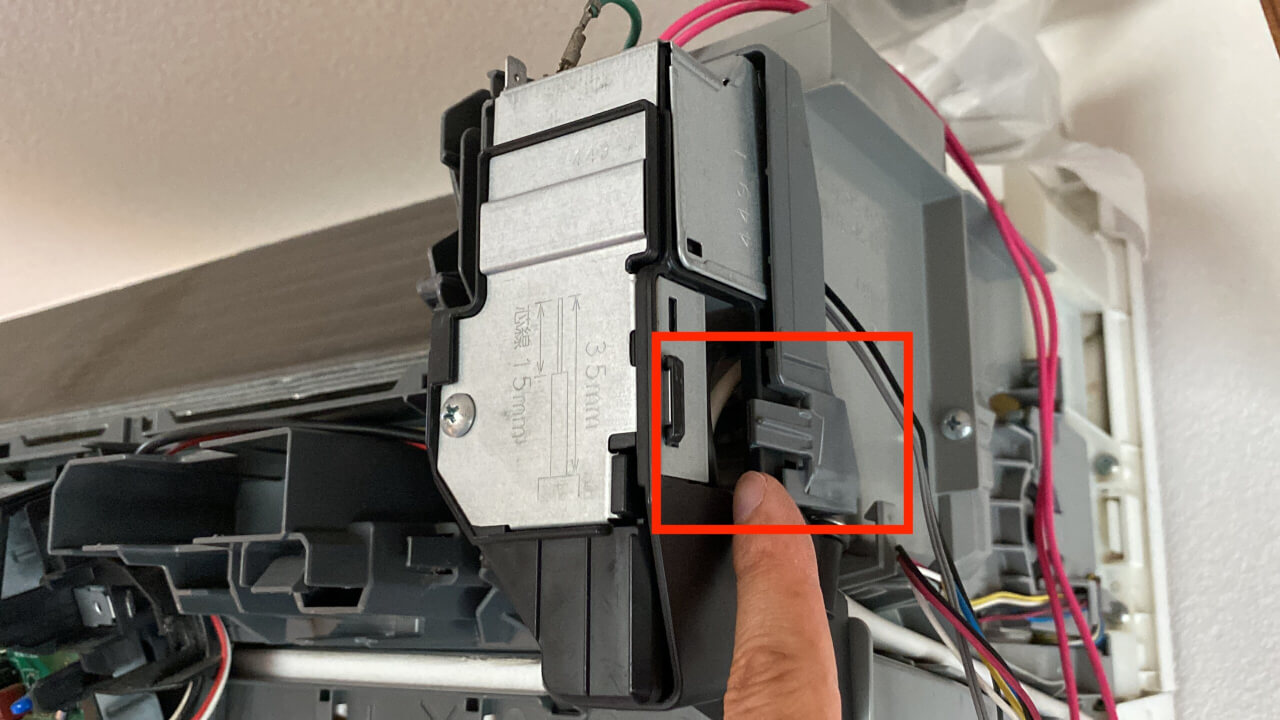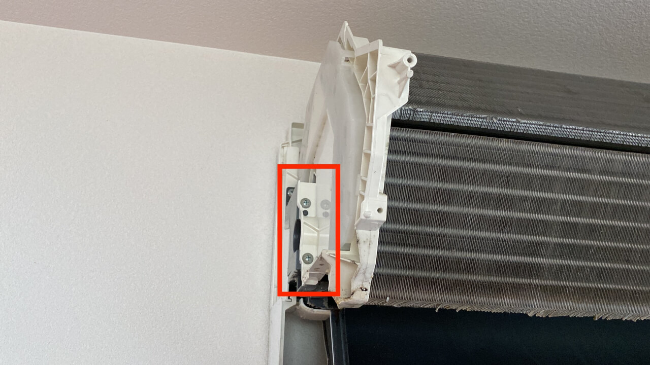 そして、 今度はエアコン本体左側のビス2カ所を取り外しておきます。