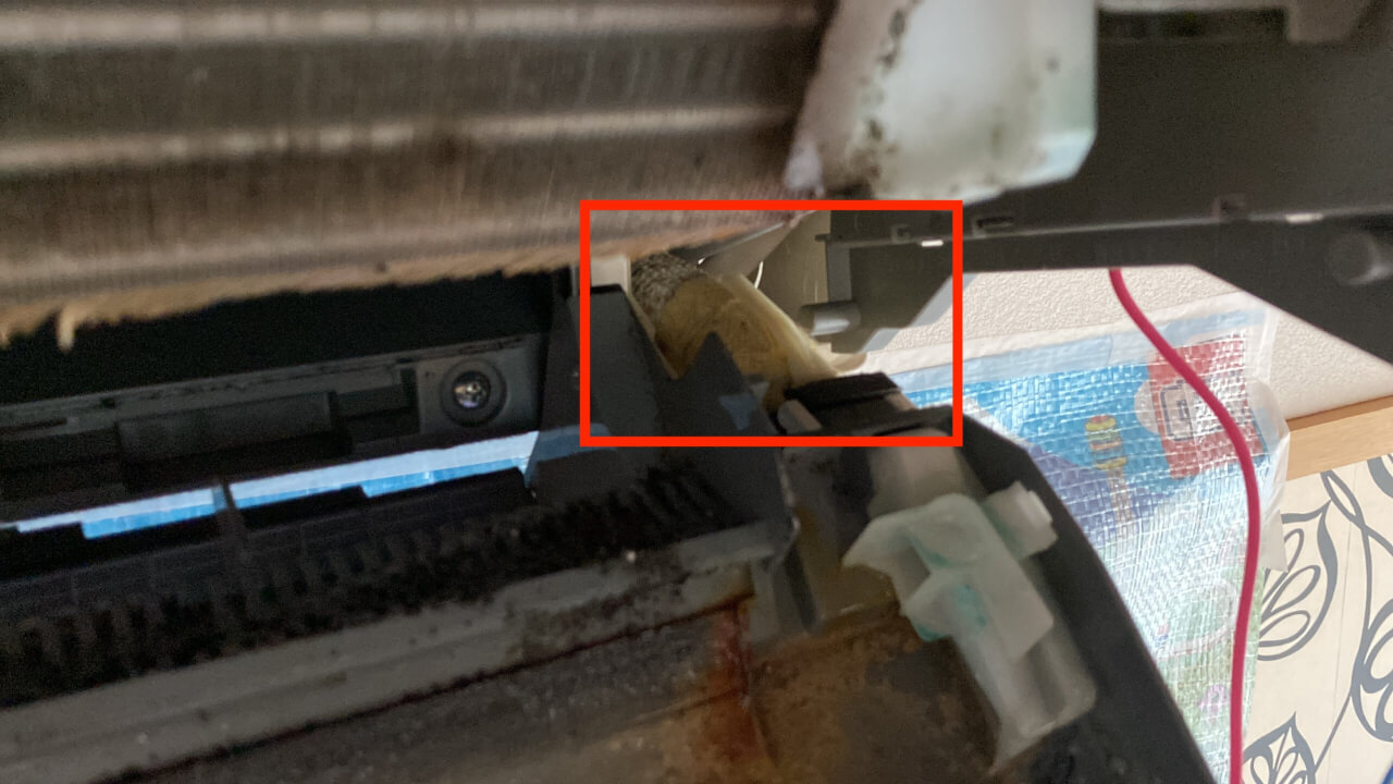 ちなみに、ドレンパンを取り外してよく観察すると、黒カビだけじゃなく白カビまで発生していました。