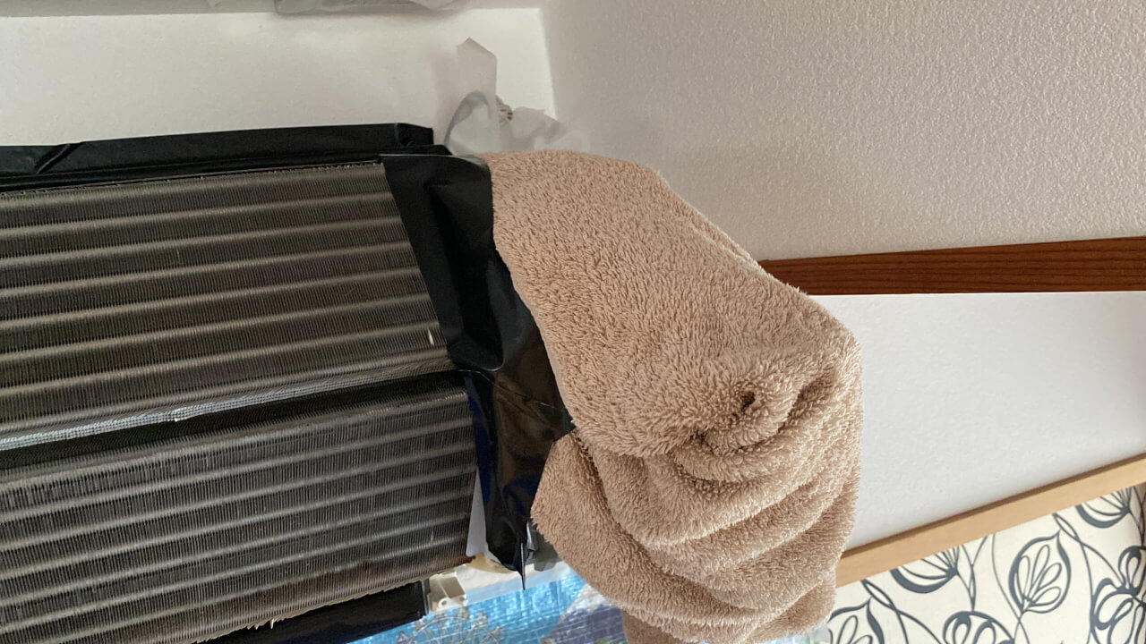 上記養生に加えて、吹出口にはこの写真のように水滴を下に落とすガイドを作りましょう。