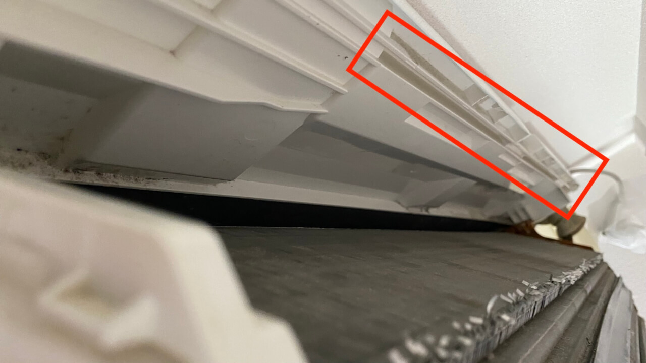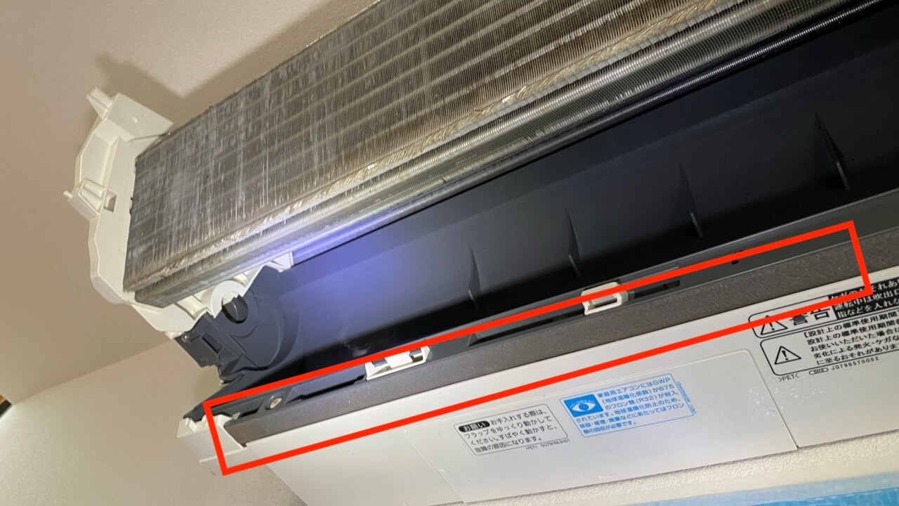 吹出口周辺は起毛素材のモールが貼られており、そこに洗い流したカビが付着するリスクを避けるためです。