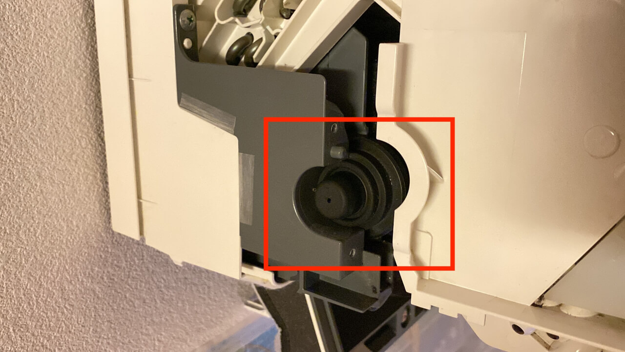 シロッコファンが入ったら、固定する黒いゴムも戻しておきましょう。