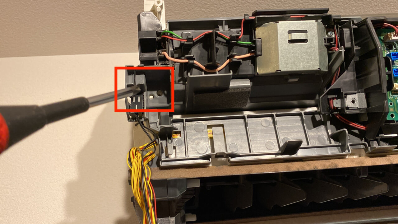基盤ボックスが元通りに戻ったのでビスで固定していきます。