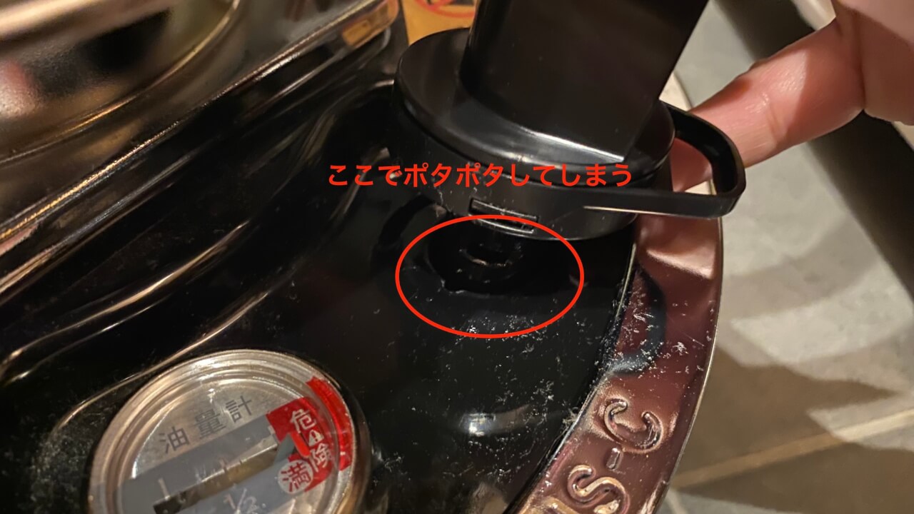 給油が終わった際にマグネット式のノズルを少し力を入れて取り外すわけですが、その際にノズルから数滴灯油が垂れてきます。