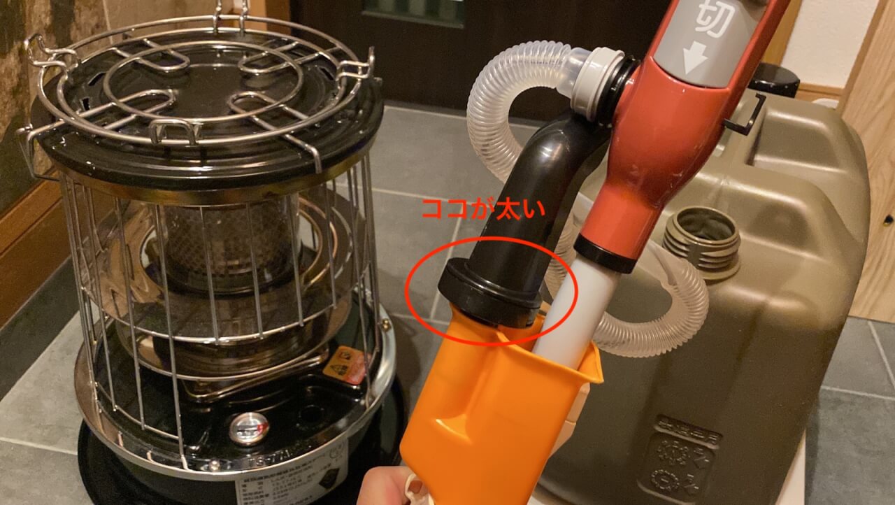 →これが原因で、ケースに収納する際に灯油タンクに差し込む方の本体がどうしてもこのノズルに触れてしまうのです。