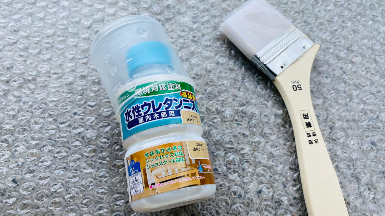 そこで今回、水性ニスから耐水性のある水性ウレタンニスを上から塗ってみました。