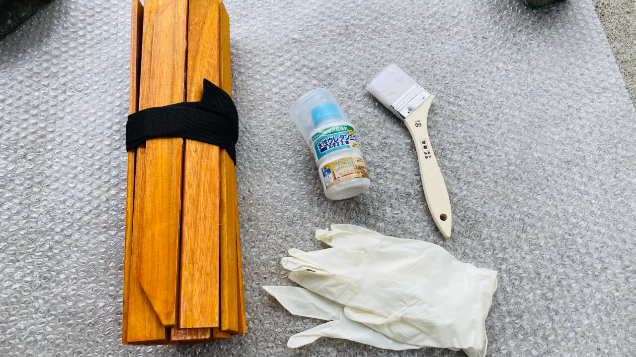 - 野外で使うには水性ウレタンニスがおすすめ。