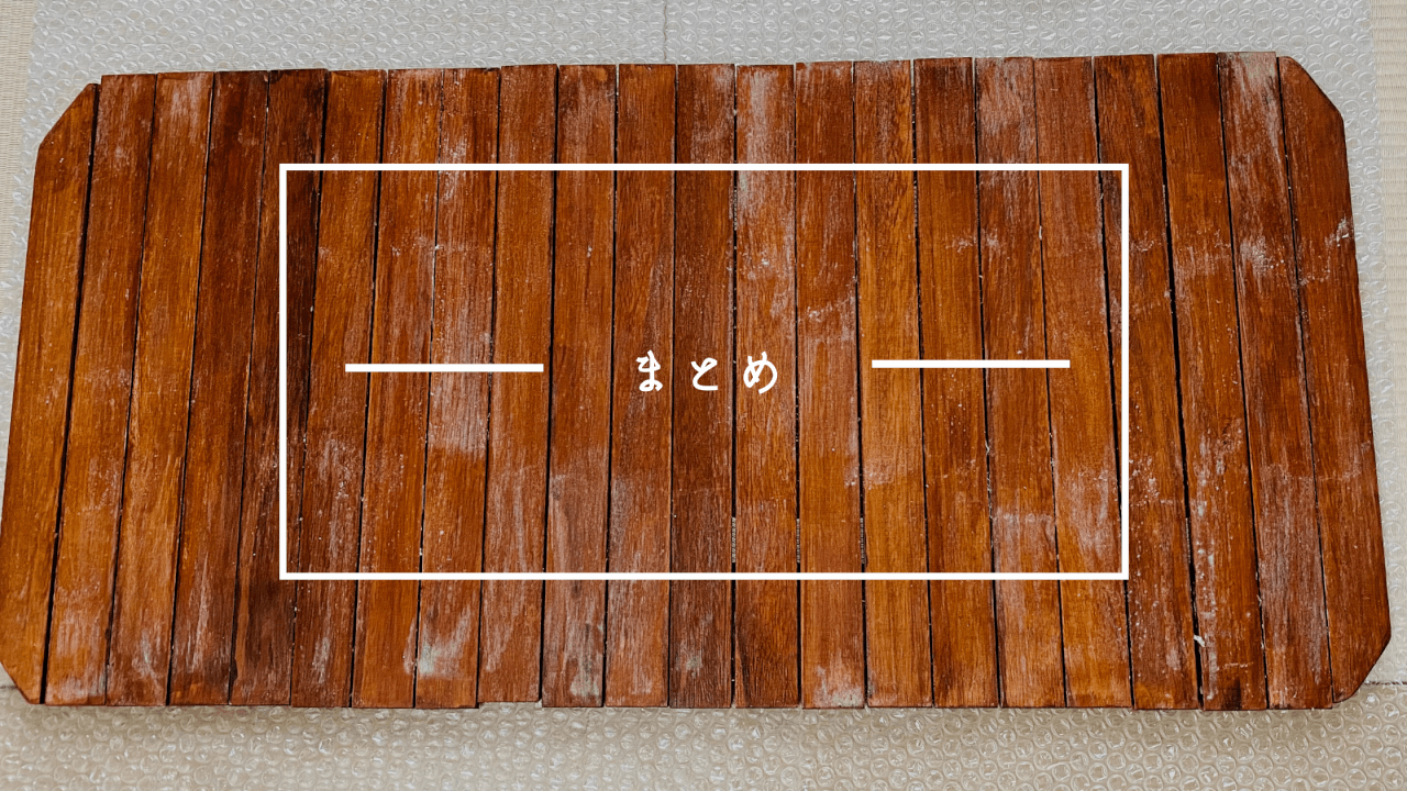- 前回のすのこ作成記事「【無印】頑丈ボックス特大×セリアすのこでテーブルを作る手順10個」の後続編
