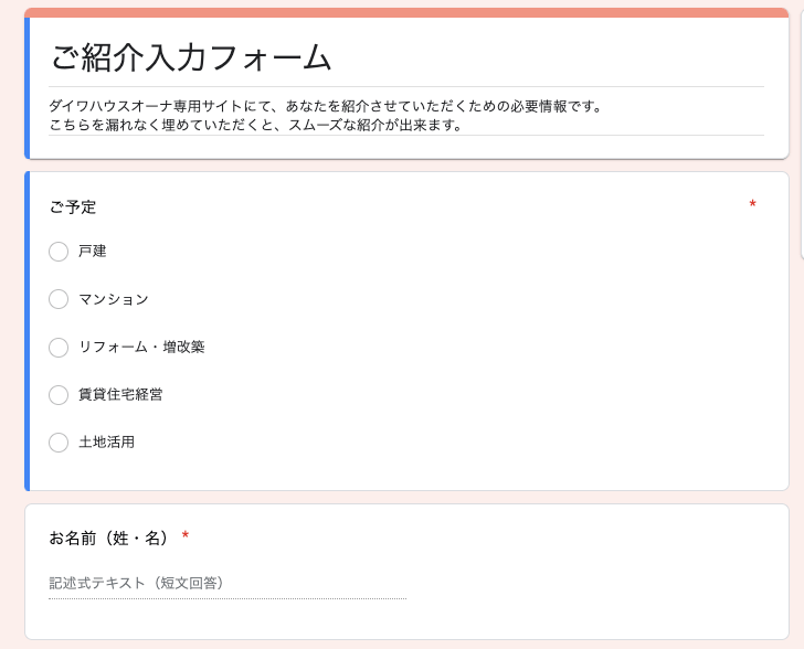 - 【1、2営業日後】いただいたメールアドレスに紹介制度に必要な情報入力フォーム(あなた専用)をお送りします。