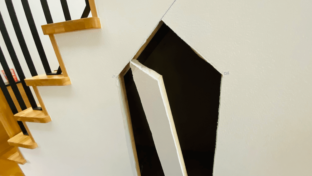 ちなみに、我が家は土間収納も階段下収納も無いので掃除道具、工具、キャンプ道具の収納場所に困り、階段下収納をDIY中です。