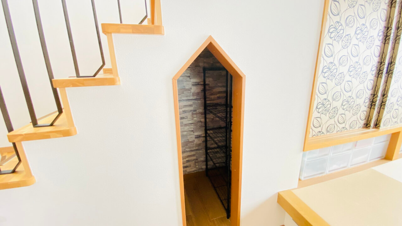 土間収納がない場合は階段下収納を設けると便利かと思います。