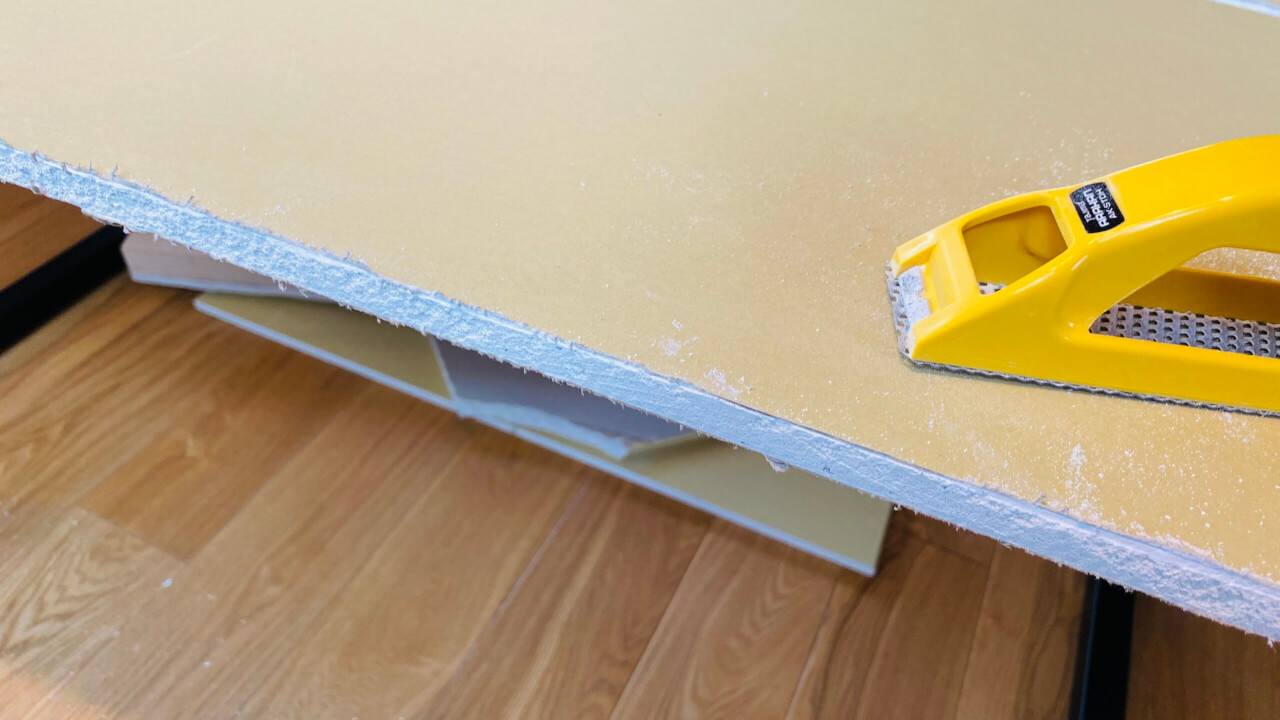 石膏ボードの切り落としが終わったら、断面をヤスリで慣らしていきましょう。