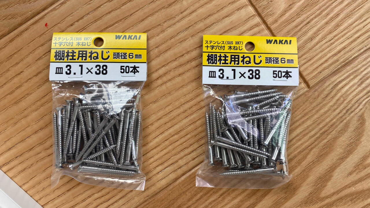 このビスは棚板に差し込むため、棚板の厚み以下にしましょう。