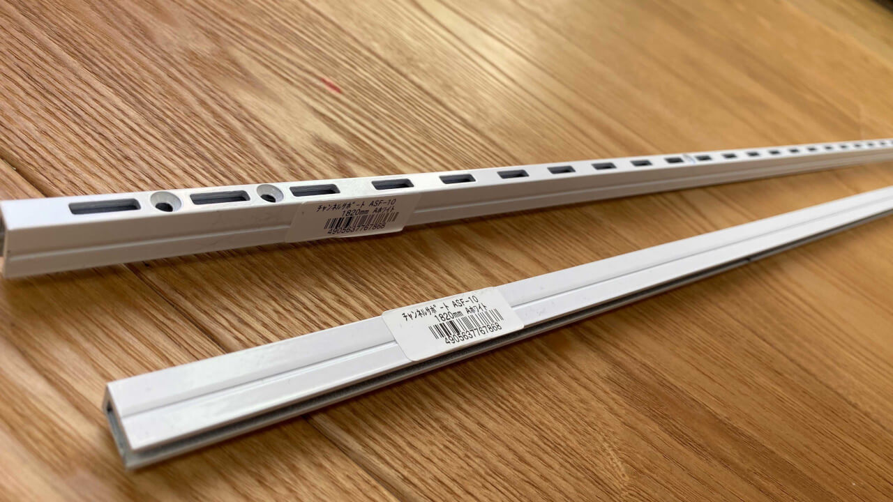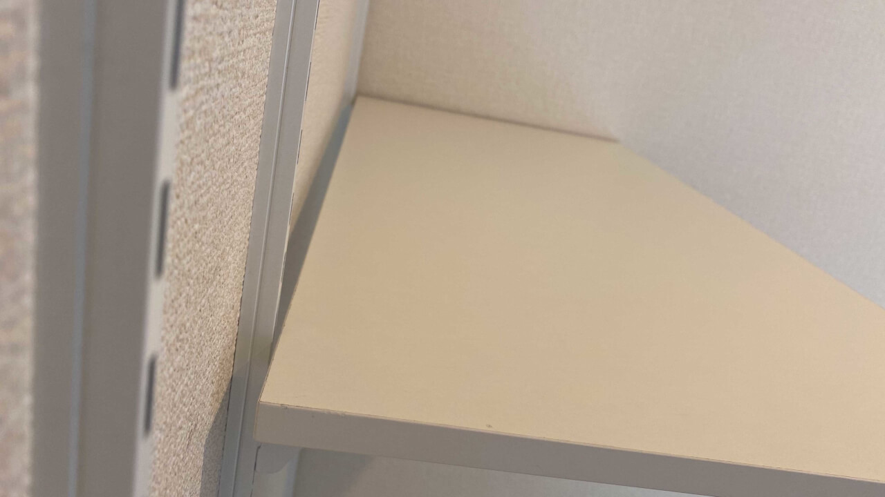 レールを出来る限り平行に走るように取り付けをしないと、棚板を設置できなくなります。
