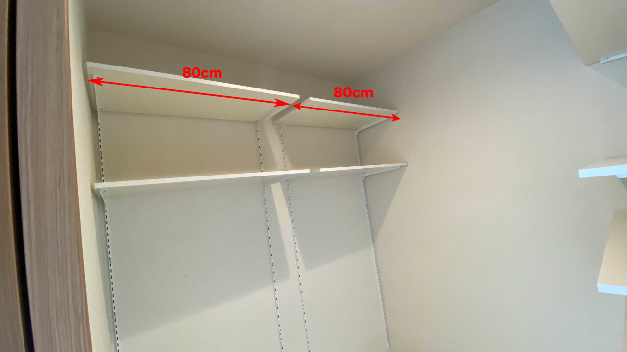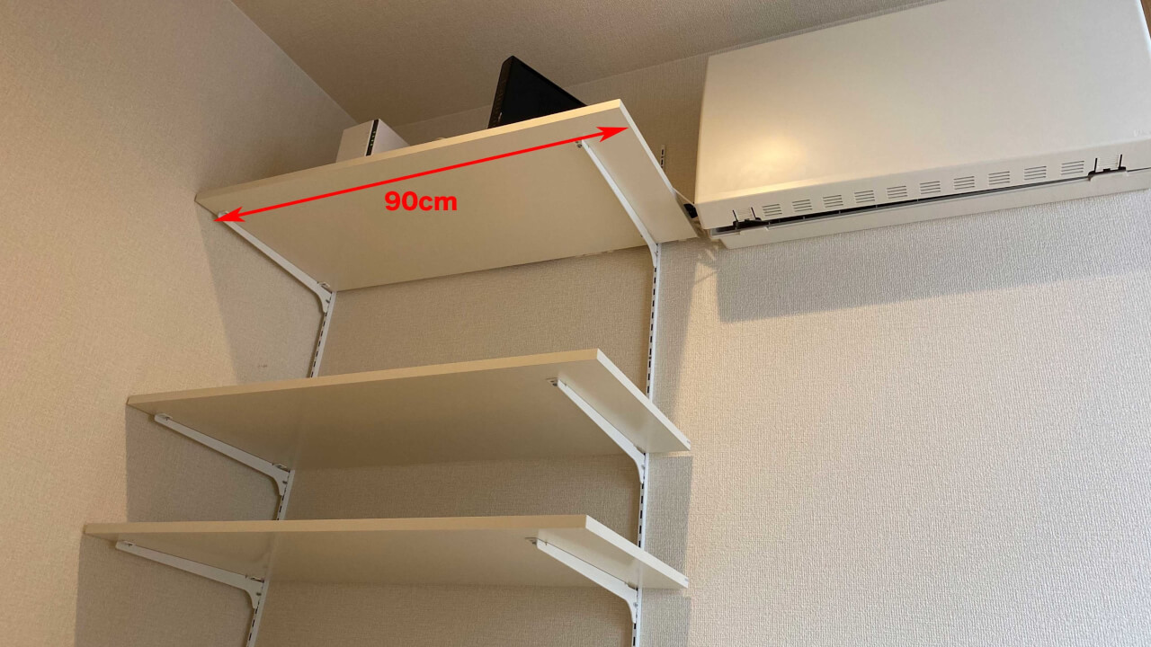 左面は80cmの棚を、右面は90cmの棚を設置しています。